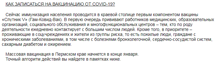 В ГБУЗ ПК «Березовская ЦРБ» проводится вакцинация против новой коронавирусной инфекции вакциной СПУТНИК V ( « Гам-